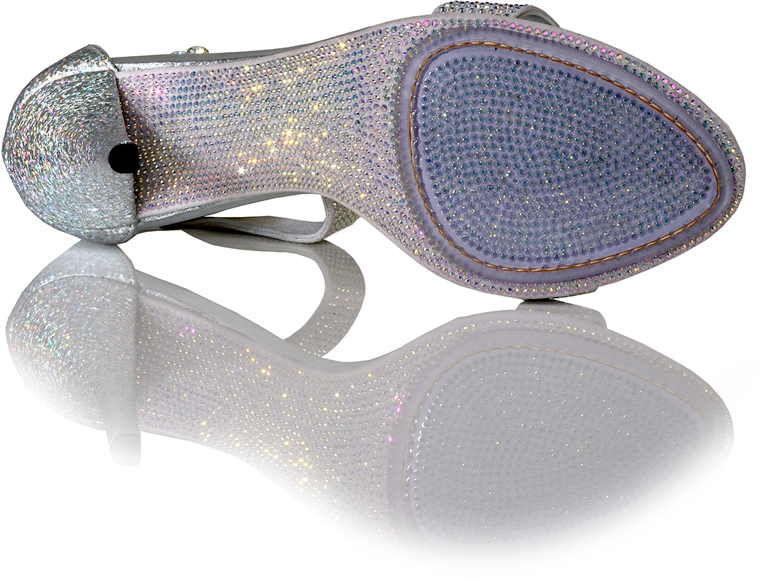 Shown in Multi-Light Silver, Iridescent Crystal Ankle and Toe Straps with unique Iridescent Crystal Sole