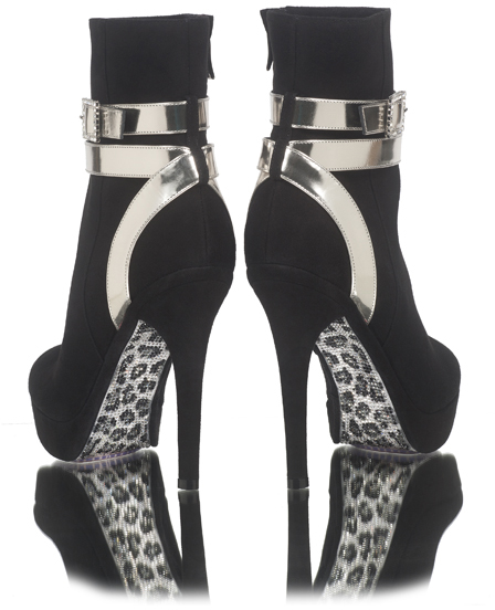 Glow metallic belted ankle straps with Swarovski® crystal buckle.