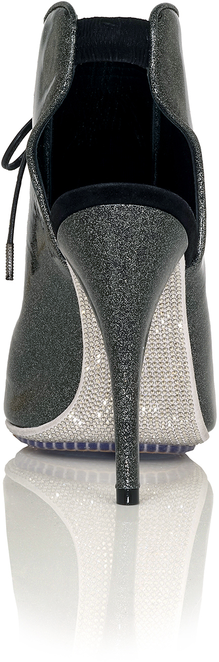 Shown in Bridge Glitter Black with unique Crystal Sole