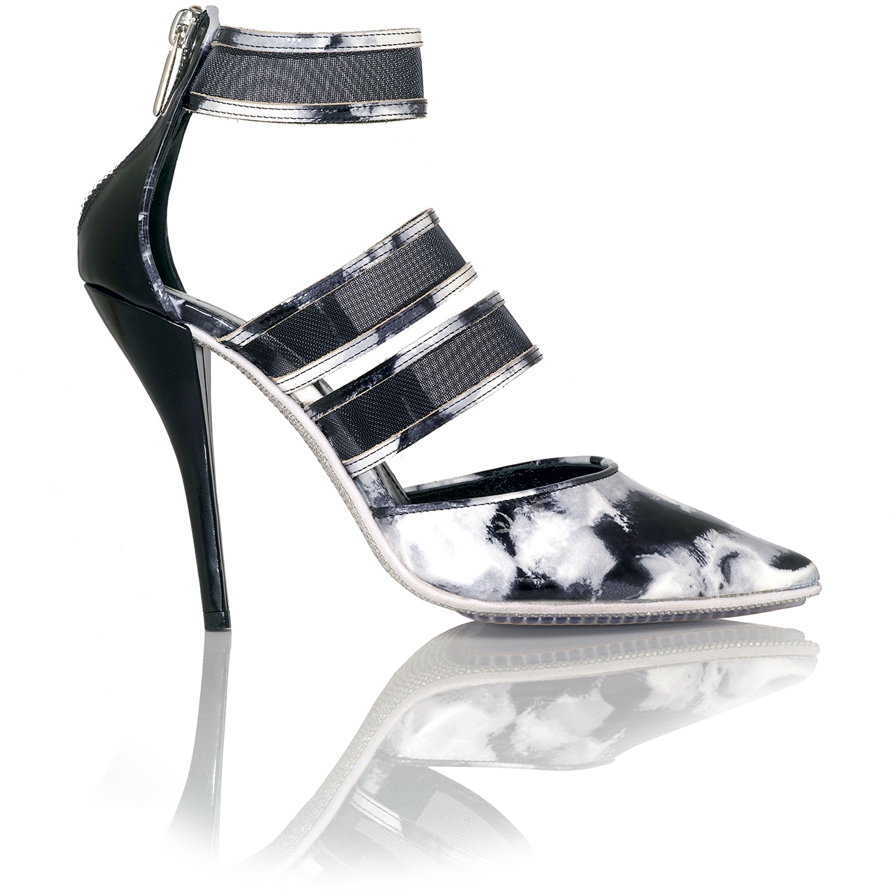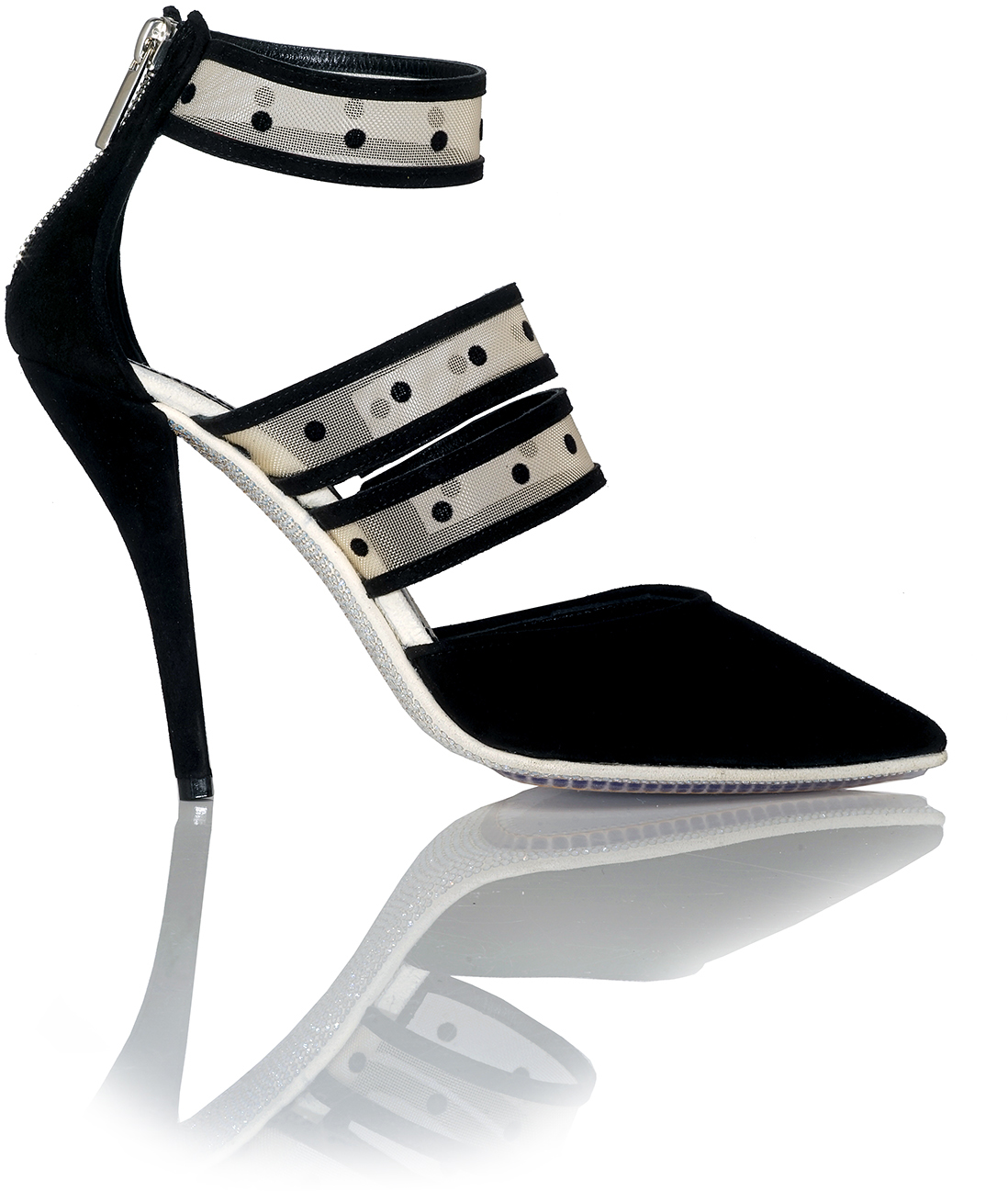 3-Strap Mesh Pointy-Toe Pump