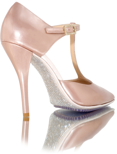 T-Strap Pointy-Toe Pump with Enamel Crystal Flowers