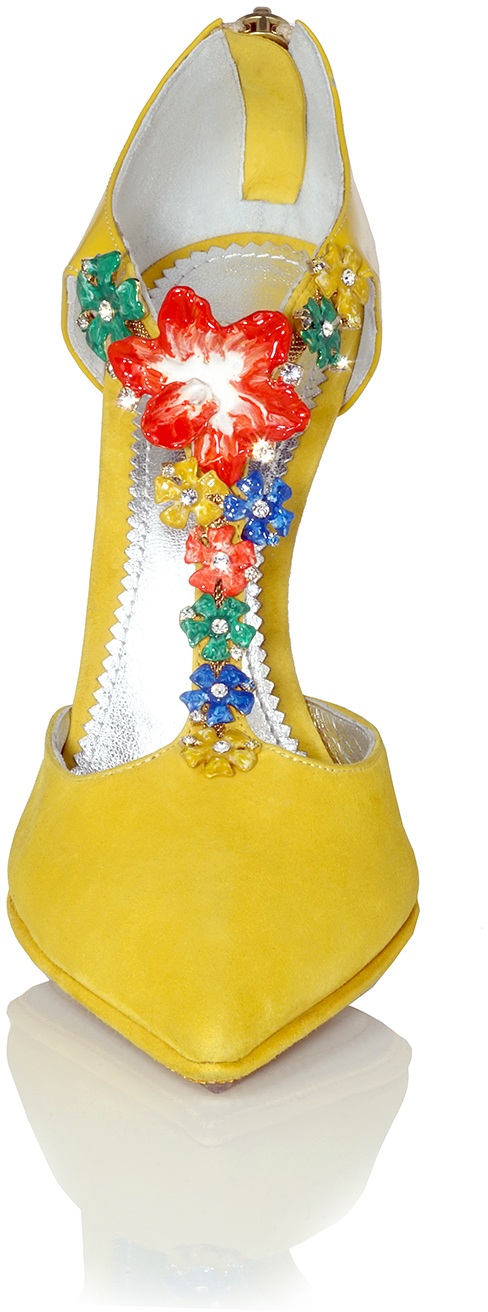 Pointy-Toe Pump with Enamel Crystal Flower