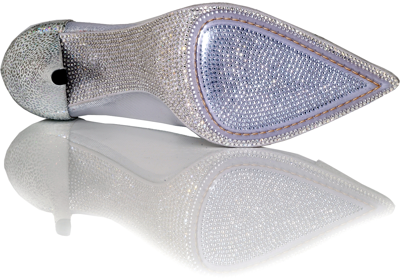Shown in SkyFall Bianco and White Tulle with unique Crystal Sole